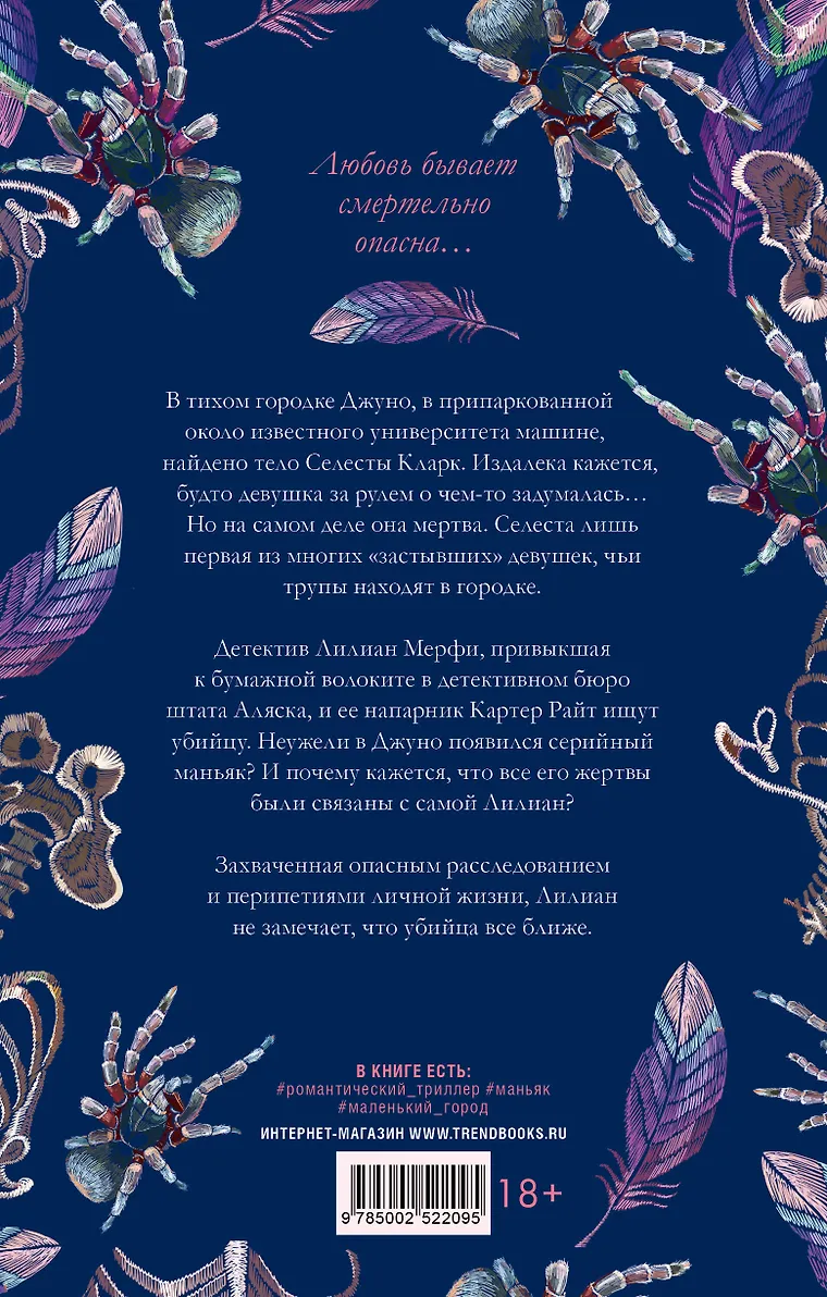В тихом городке Джуно, в припаркованной около известного университета машине, найдено тело Селесты Кларк. Издалека кажется, будто девушка за рулем о чем‑то задумалась… Но на самом деле она мертва. Селеста лишь первая из многих «застывших» девушек, чьи трупы находят в городке. Детектив Лилиан Мерфи, привыкшая к бумажной волоките в детективном бюро штата Аляска, и ее напарник Картер Райт ищут убийцу. Неужели в Джуно появился серийный маньяк? И почему кажется, что все его жертвы были связаны с самой Лилиан? Захваченная опасным расследованием и перипетиями личной жизни, Лилиан не замечает, что убийца все ближе.