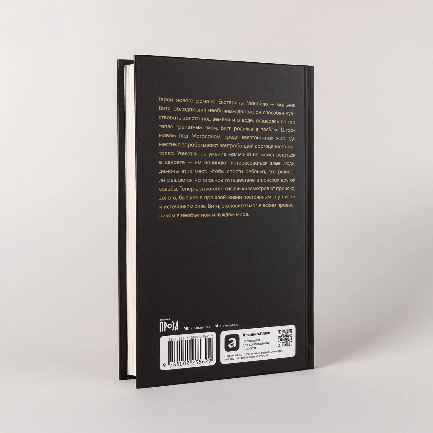 Герой нового романа Екатерины Манойло — мальчик Витя, обладающий необычным даром: он способен чувствовать золото под землей и в воде, отзываясь на его тепло трепетным эхом. Витя родился в посёлке Штормовом под Магаданом, среди золотоносных жил, где местные зарабатывают контрабандой драгоценного металла. Уникальное умение мальчика не может остаться в секрете — им начинают интересоваться злые люди, демоны этих мест. Чтобы спасти ребёнка, его родители решаются на опасное путешествие в поисках другой судьбы. Теперь, за многие тысячи километров от прииска, золото, бывшее в прошлой жизни постоянным спутником и источником силы Вити, становится магическим проводником в необъятном и чуждом мире.