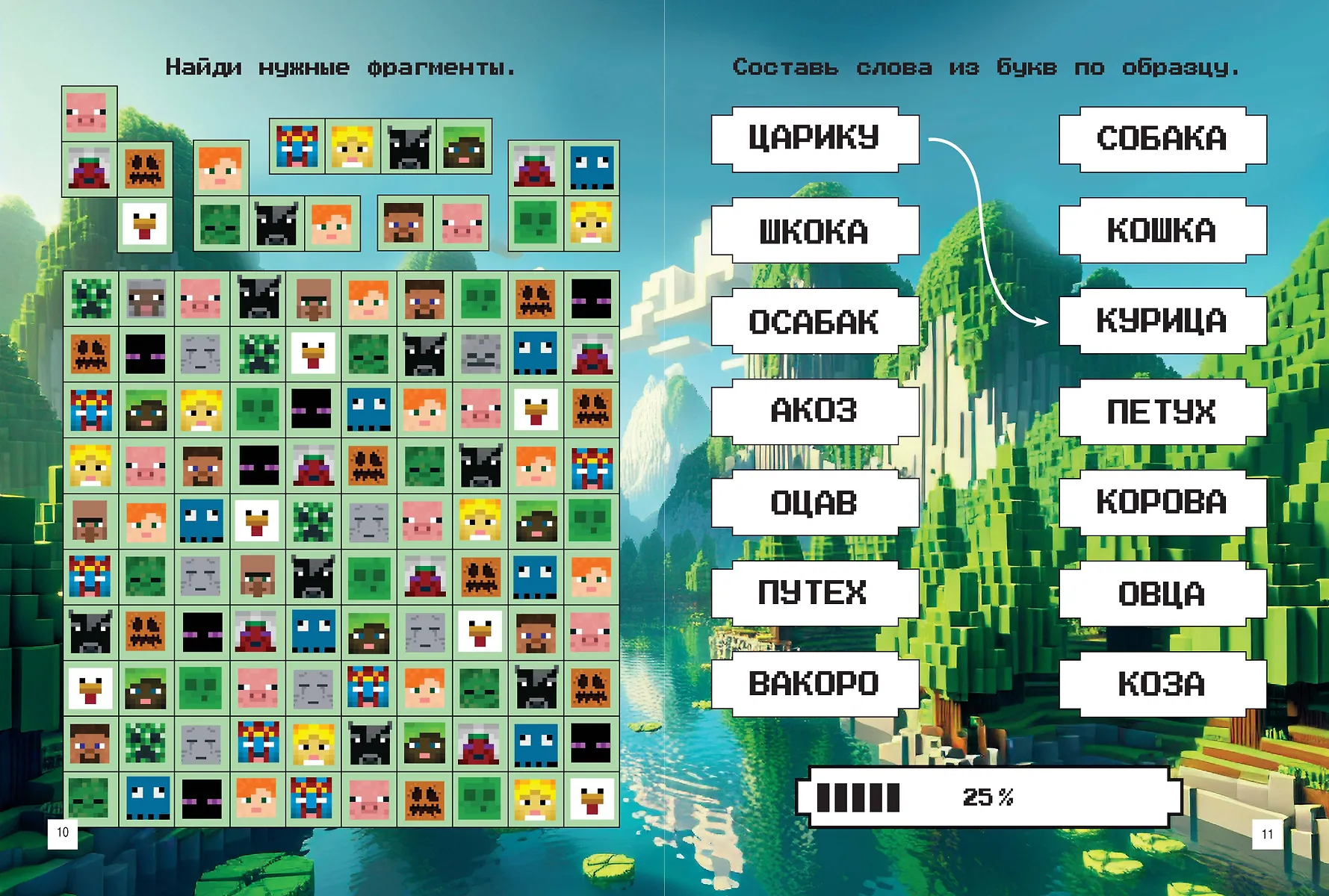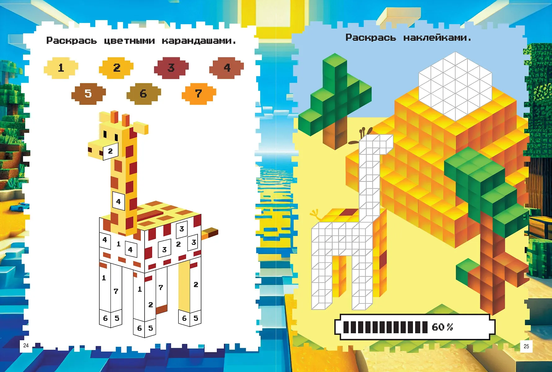 Книга "Майнкрафт. Квест-игры и задания" — лучший способ отвлечься от гаджетов. Книга большого формата, имеет 48 цветных страниц, построена в форме квеста и оформлена в стиле популярной компьютерной игры. Бонус — 3D-наклейки, с помощью которых можно создать трёхмерные рисунки и картинки-мозаики. Ребёнку предстоит выполнить все задания, собрать артефакты и в финале разгадать хитрый шифр.