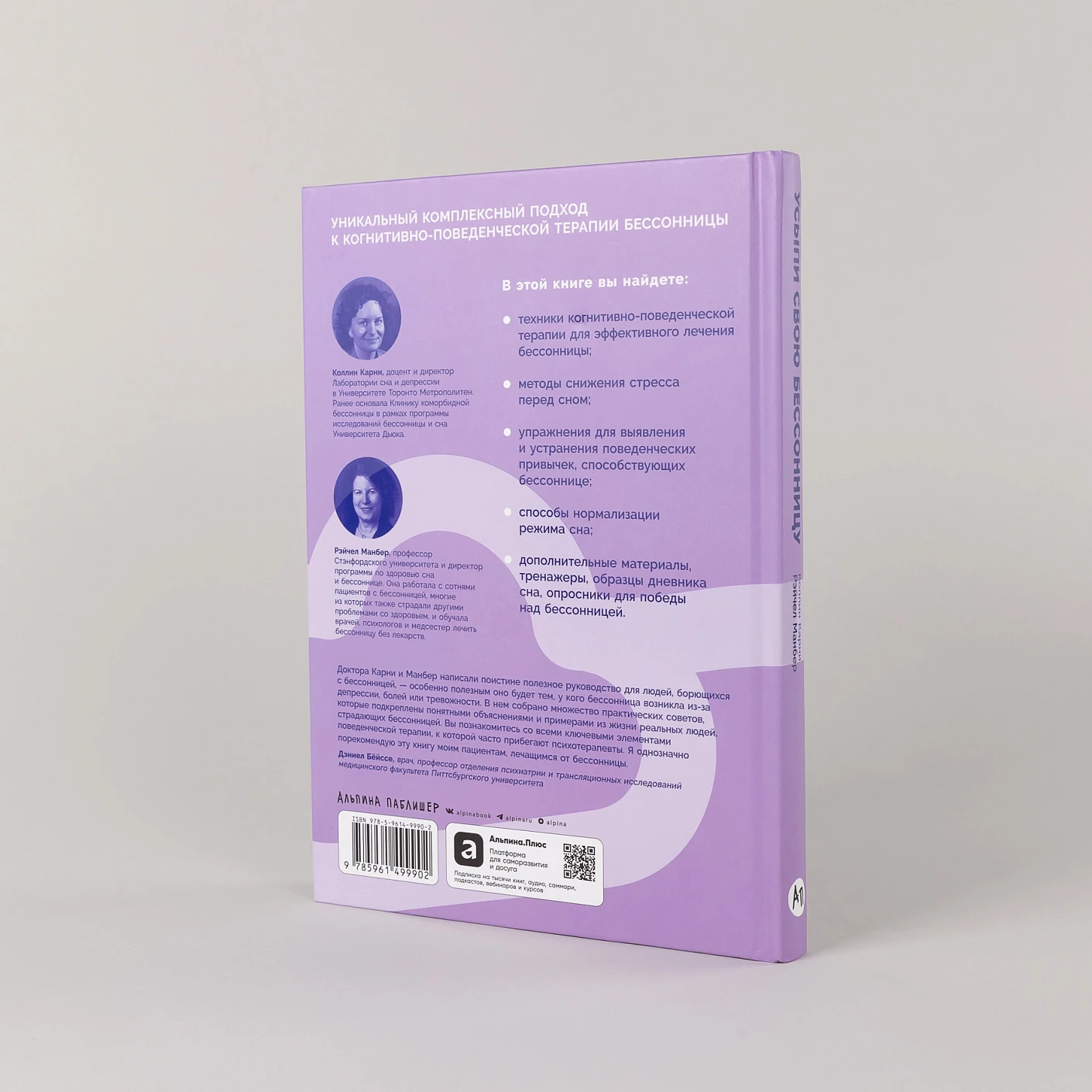 В книге «Усыпи свою бессонницу» Коллин Карни и Рэйчел Манбер, ведущие мировые специалисты по когнитивно-поведенческой терапии сна, объясняют: почему так важно строго придерживаться необходимого для вас времени сна и как его рассчитать; как успокоить гиперактивный разум, который не дает вам заснуть; почему необходимо сразу выходить из спальни, если сон не приходит.