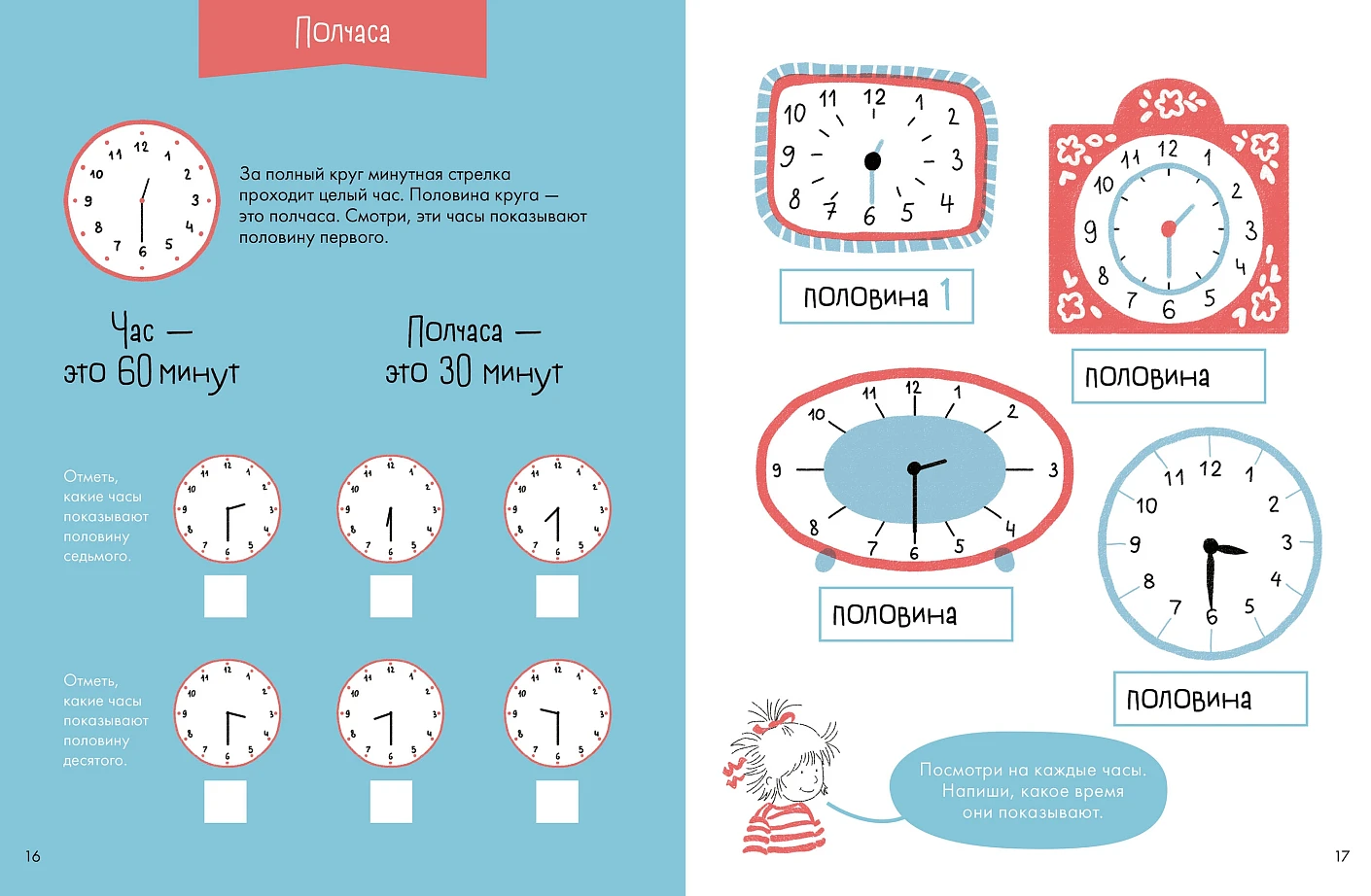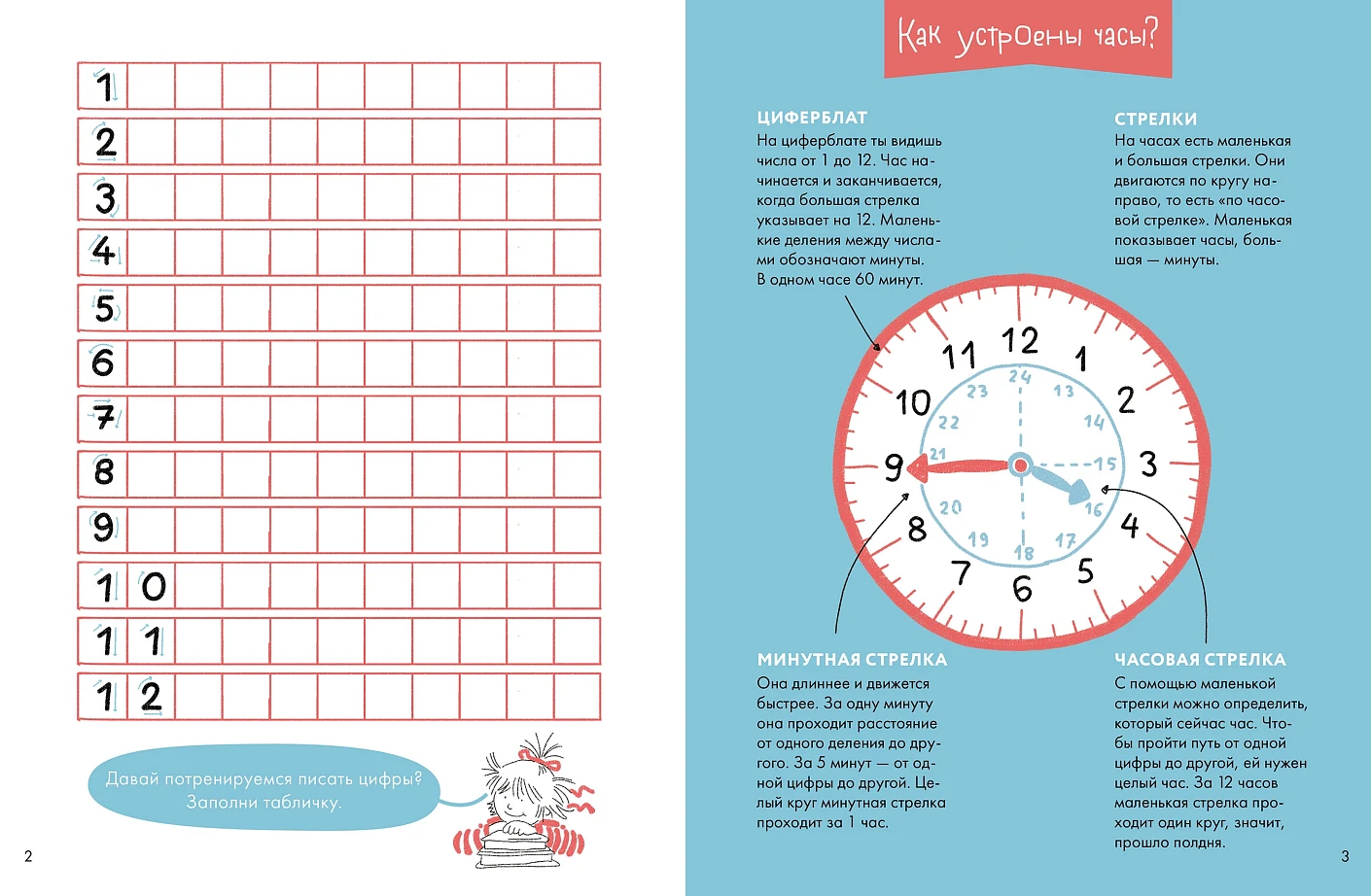Учим время. Час, полчаса, четверть часа Знакомимся с часами и учимся определять время. Развивающие тетради вместе с Конни!