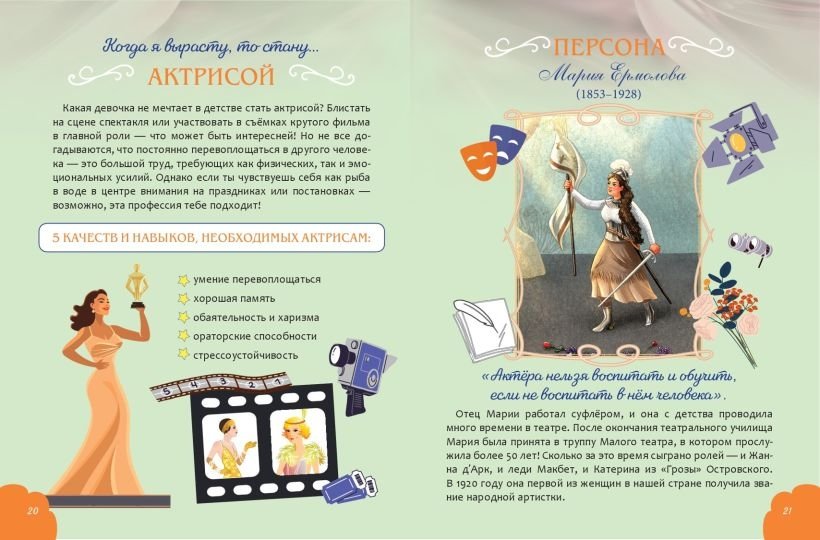 Перед тобой книга, которая может стать твоим вдохновением. Она расскажет о разных профессиях и великих женщинах нашей страны, которые добились в них успехов. Читай и примеряй различные виды деятельности на себя!