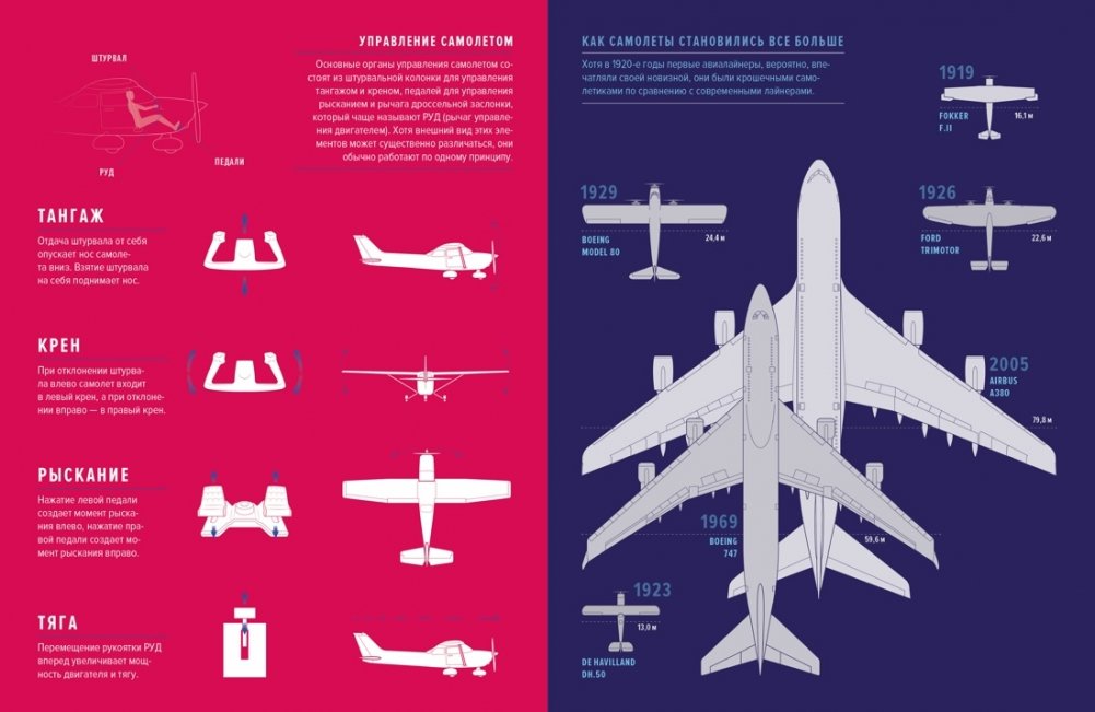 Человечество мечтало о полете с самого начала истории. Книга Зака Скотта приоткрывает завесу чуда, которое сопровождает нас ежедневно, – завесу мира авиации. Каждая страница, снабженная уникальными авторскими иллюстрациями, удивительной инфографикой и наглядными схемами, объясняет принципы устройства всех летательных аппаратов от первых планеров до современных коптеров. Читатель узнает, как поднять в воздух и правильно посадить самолет, как возникает подъемная сила и какие законы физики позволяют человеку летать.