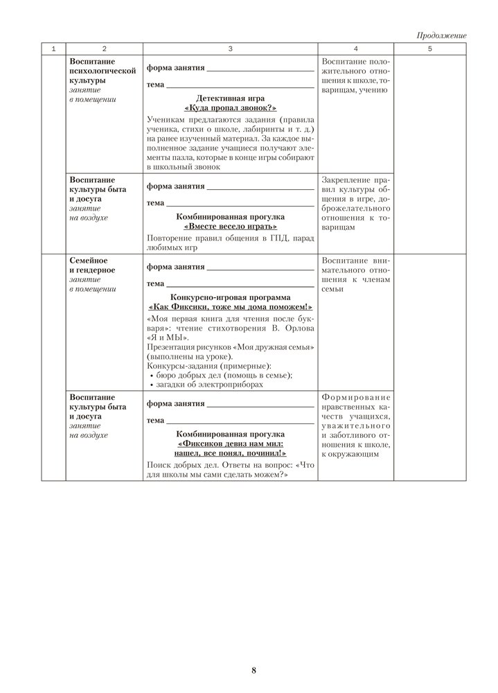 Группа продленного дня. 1 класс. Примерное календарно-тематическое планирование. 2025/2026 учебный год
