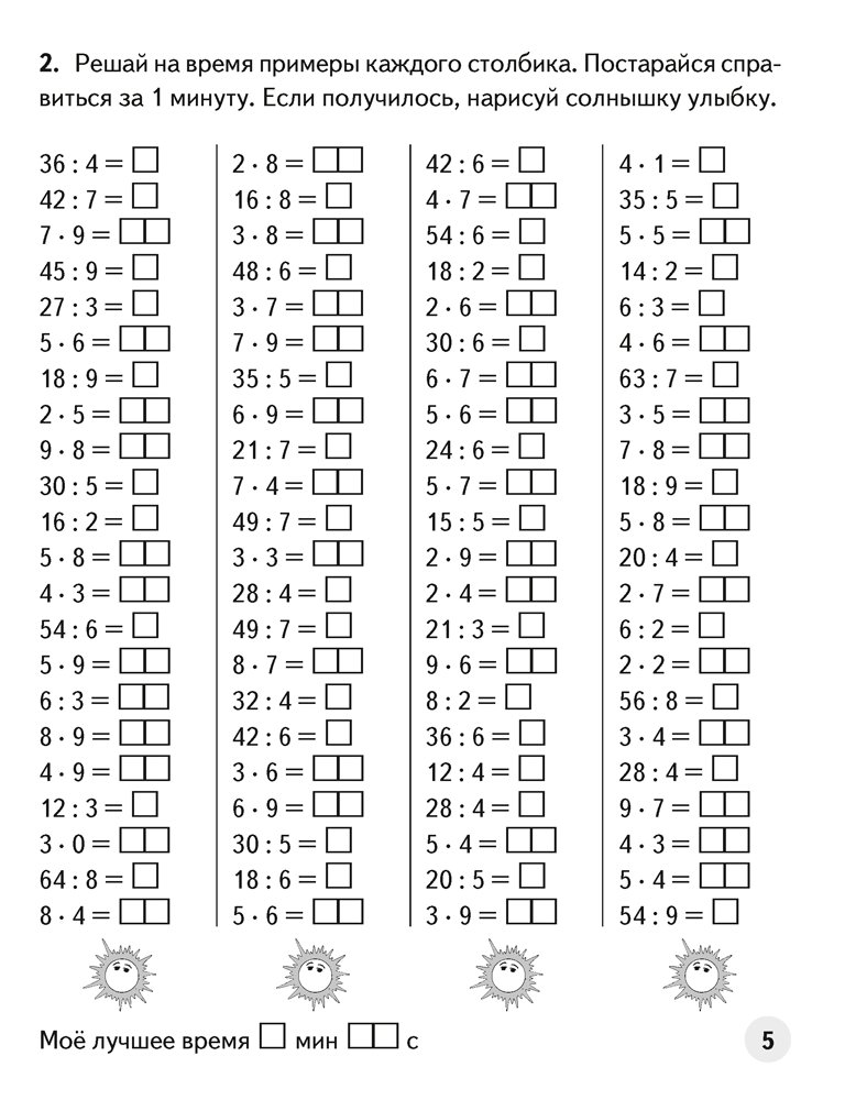 Пособие предназначено для автоматизации устного счёта при выполнении действий с многозначными числами. При решении примеров не только отрабатываются вычислительные навыки, но и формируется «числовая зоркость», тренируется внимание, развивается оперативная память ребёнка. Тренажёр может использоваться для работы как в классе, так и дома.