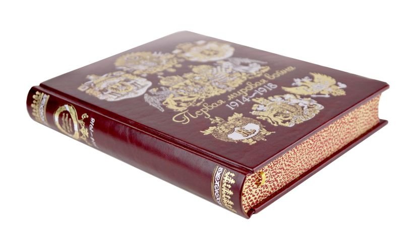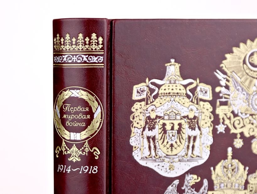 Первая мировая война. Книга в коллекционном кожаном переплете ручной работы с окрашенным, торшонированным и золочёным обрезом