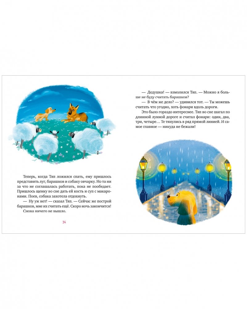 «Тяп во сне шагал по длинной лунной дороге и считал фонари: один, два, три, четыре... Те тянулись в ряд прямой линией. И самое главное — никуда не бежали!»