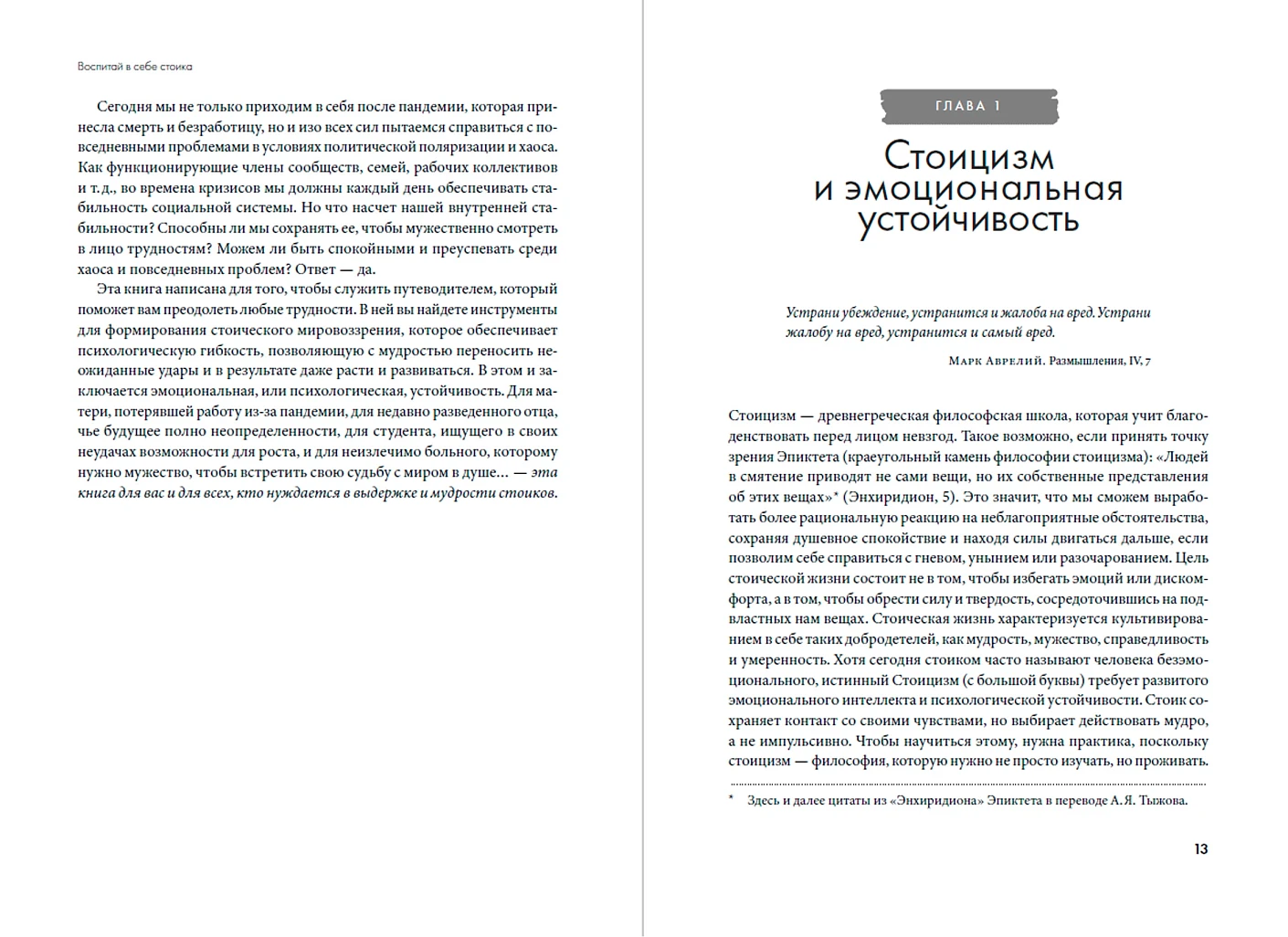 Вы узнаете, как добродетели стоиков — мудрость, справедливость, мужество и умеренность — могут стать вашим компасом в мире, который становится все более изменчивым. И наконец, вы узнаете, что быть стоиком — не значит подавлять эмоции и страдать с каменным лицом. Быть стоиком — значит дать себе возможность подумать, прежде чем реагировать, и решить для себя, стоит ли вообще позволять себе страдать. Это и есть ключ к счастью.