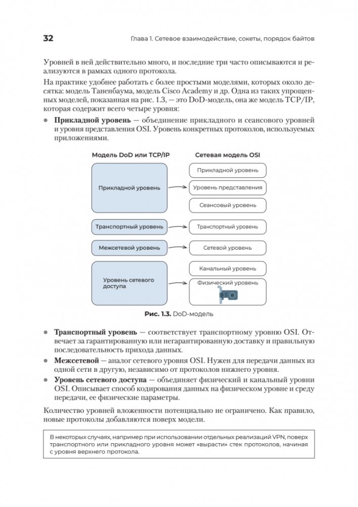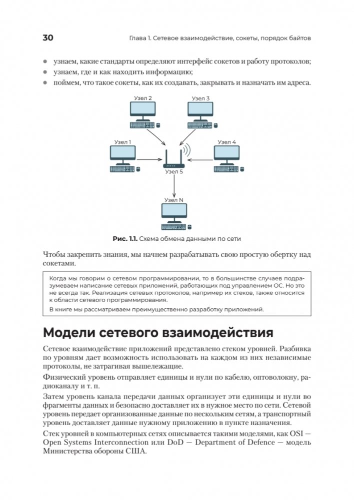 Материал охватывает темы от сокетов и сетевых протоколов до сетевых приложений, сочетая теорию со множеством практических примеров на C++, Python и Go.