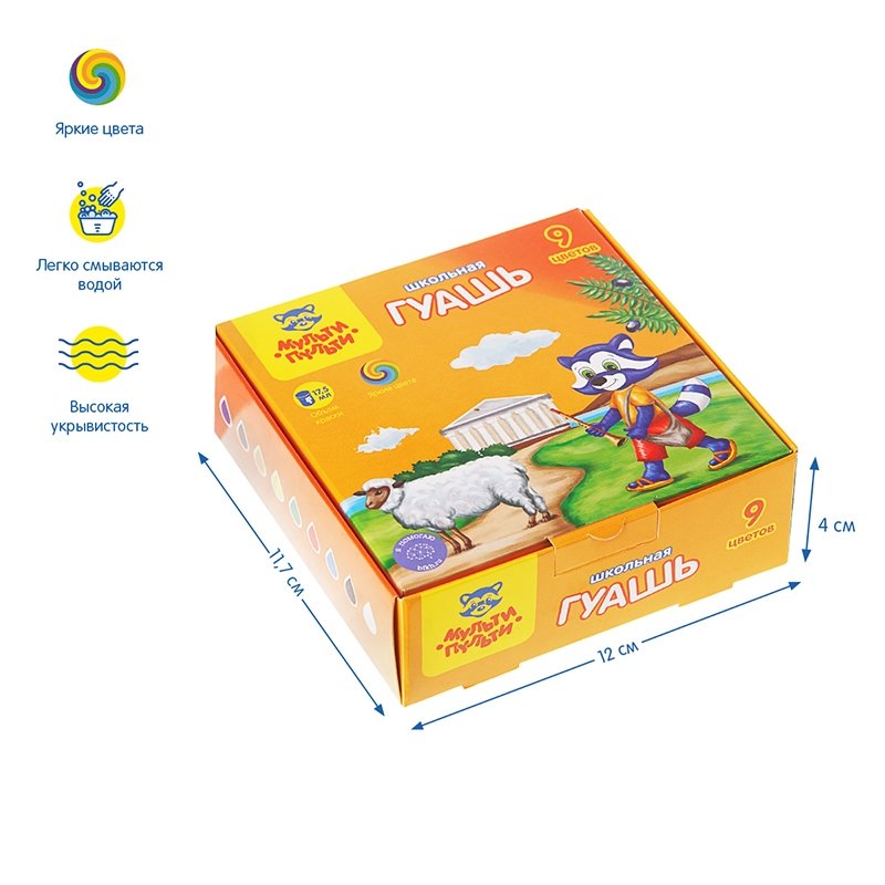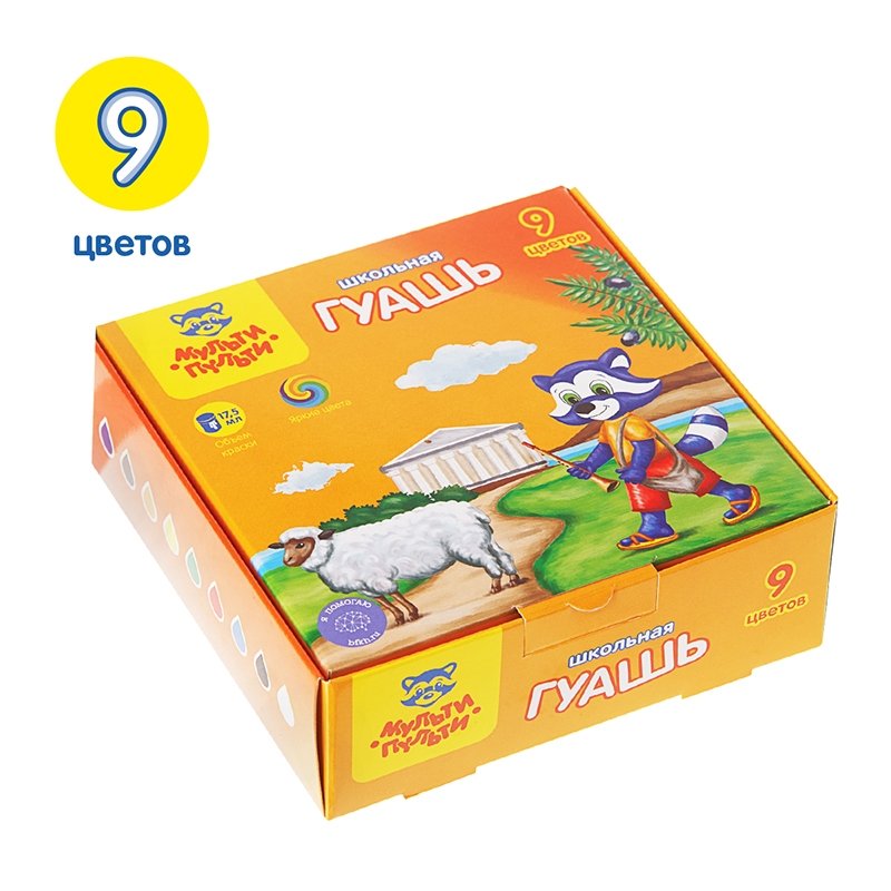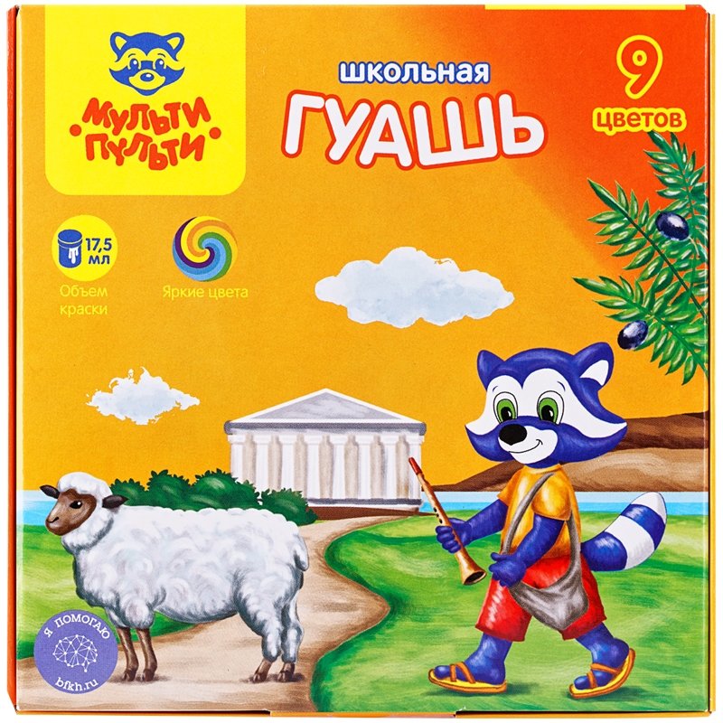 Гуашь Мульти-Пульти "Енот в Греции", 9 цветов, 17,5 мл, картон. Арт. ГК_33582