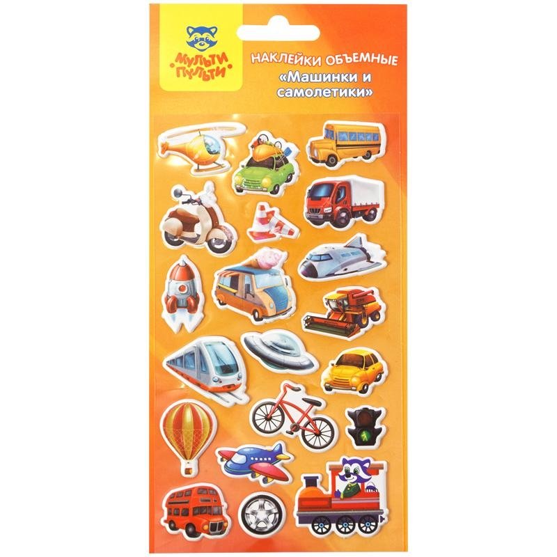 Наклейки объемные Мульти-Пульти Машинки и самолетики, 1022см, 20 наклеек, инд. уп., европодвес