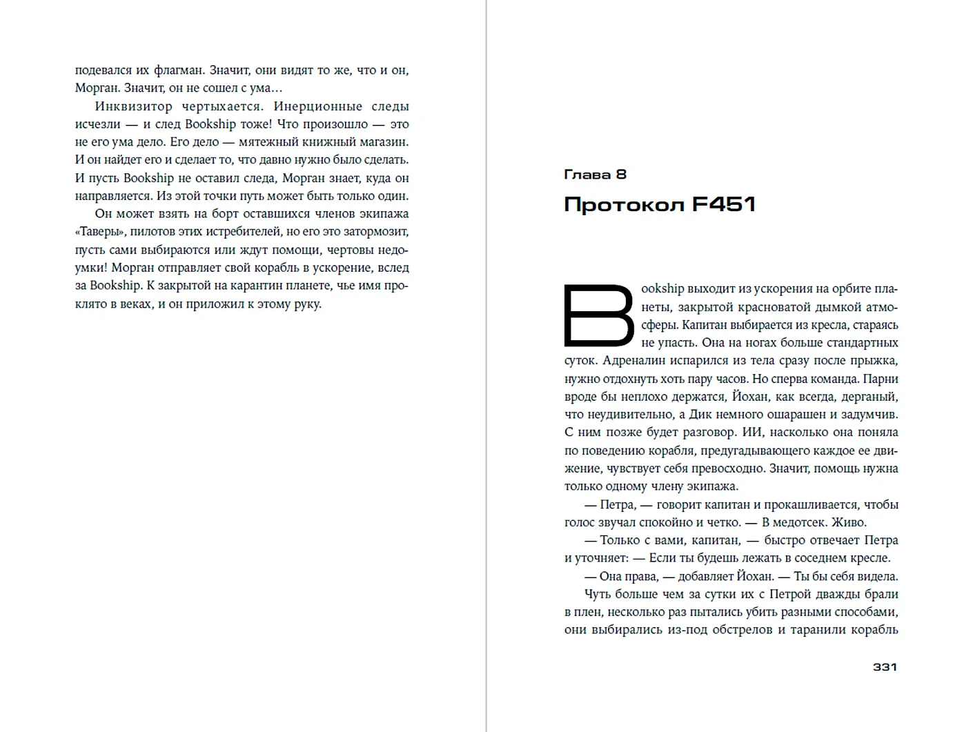 Bookship — не просто космический корабль. Он несет на борту, возможно, последний во всей вселенной оплот мысли и надежды. Правда, выясняется это не сразу. Поначалу команда этого ведра с болтами, укрепленного (почти) честным словом капитана и силой искусственной мысли управляющего компьютера, перевозит грузы и немного запрещенки. А как иначе в мире, где распространение книг вне закона?