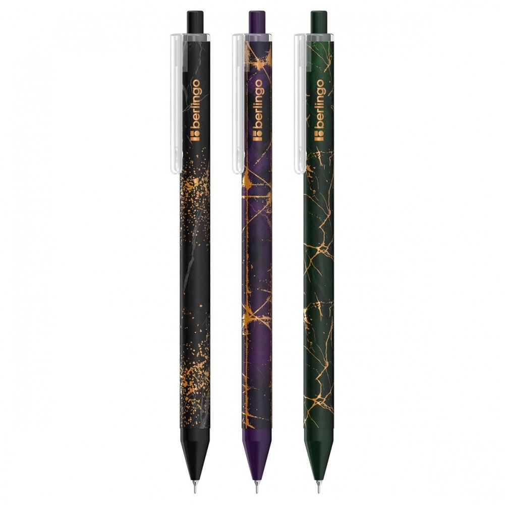 Ручка шариковая автоматическая Berlingo "Golden Shade" синяя, 0,7мм, рисунок на корпусе, soft touch, ассорти