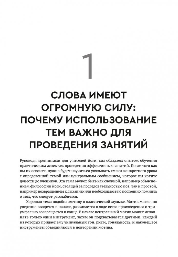 Это руководство будет полезно учителям, инструкторам и тем, кто занимается йогой самостоятельно и хочет поднять свои тренировки на новый уровень. Оно начинается с части, посвященной голосу, аутентичности, манере подачи материала, практике, повторению и источникам вдохновения. За ней следует вторая часть, где предлагается более 50 готовых тем, которые вы можете положить в основу своих занятий. В последней части приводятся шаблоны для создания ваших тем и записи идей.