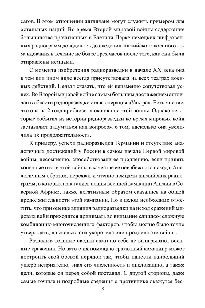 В начале XX века радиосвязь превратилась в основное средство оперативного управления вооруженными силами на поле боя. Радиограмму с приказом можно было почти мгновенно довести до сведения тех, кто должен был его исполнять. А радиограмма с донесением своевременно информировала об обстановке на фронте военное командование, находившееся на значительном удалении. Одновременно были разработаны эффективные методы перехвата радиограмм и взлома шифров, использованных для их засекречивания. В результате возникла радиоразведка, представляющая собой разновидность разведывательной деятельности, в ходе которой осуществляется сбор секретной информации из перехваченных радиограмм противника. Во время двух самых кровавых и разрушительных мировых войн в истории человечества, а также в холодной войне радиоразведка сыграла важную роль не только на полях сражений, но и в кабинетах государственных деятелей и дипломатов.