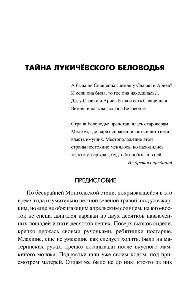«Тайна Лукичёвского Беловодья» — смысловое продолжение книг «Под покровом небес» и «Таёжный Китеж», выпущенных ранее в этой же серии. Главный герой, охотник-промысловик Сергей Лукич, вроде бы отыскал свой земной рай, где царит справедливость и свобода от власть имущих; рядом с ним любящая семья, верные друзья-охотники, вокруг благодать, казалось бы, живи и радуйся; но давнее прошлое новых мест неожиданно вновь и вновь заявляет о себе. Также в книгу включена повесть «Там, на нашей счастливой земле» об удивительных событиях, случившихся на берегах великих сибирских рек.