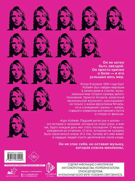 Он не хотел быть звездой. Он просто кричал о боли — и его услышал весь мир. Когда 8 апреля 1994 года Курт Кобейн был найден мертвым в своем доме в Сиэтле, музыкальный мир потерял кумира целого поколения. Эрнесто Ассанте, известный музыкальный журналист, рассказывает не только о жизни фронтмена Nirvana, но и о рождении гранжа — жанра, ставшего символом внутреннего бунта и отказа от фальши. "Курт Кобейн. Падший ангел рок-н-ролла" — это история о человеке, который не играл роли, а жил так, будто каждый день мог стать последним. О музыке, рожденной из отчаяния. О пути, которому не суждено было закончиться иначе. И о том, почему его имя живет в сердцах людей спустя десятилетия после ухода.