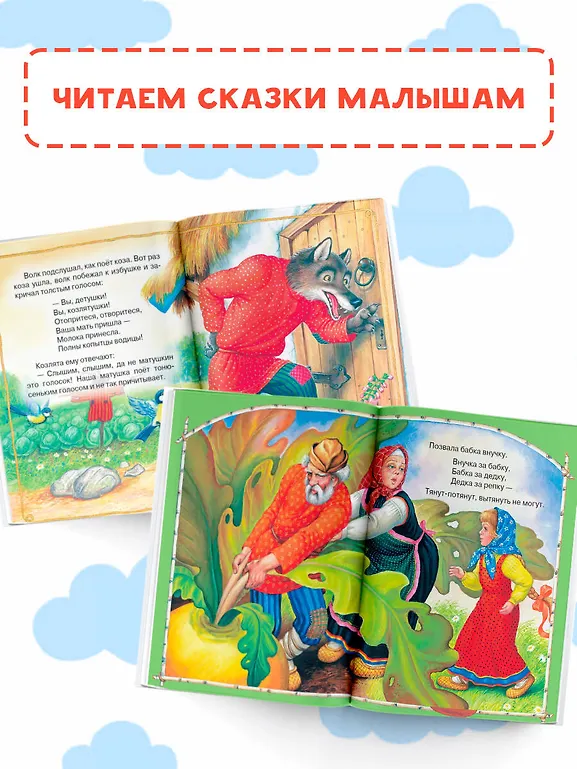 В книгу "Волк и козлята" вошли русские народные сказки, которые знакомы каждому с детства: "Тере- мок", "Репка", "Три медведя" и многие другие. Эти истории полны юмора и житейской мудрости, а добро в них всегда побеждает зло. Яркие иллюстрации к сказкам создал художник Иван Цыганков. Для детей до 3-х лет.