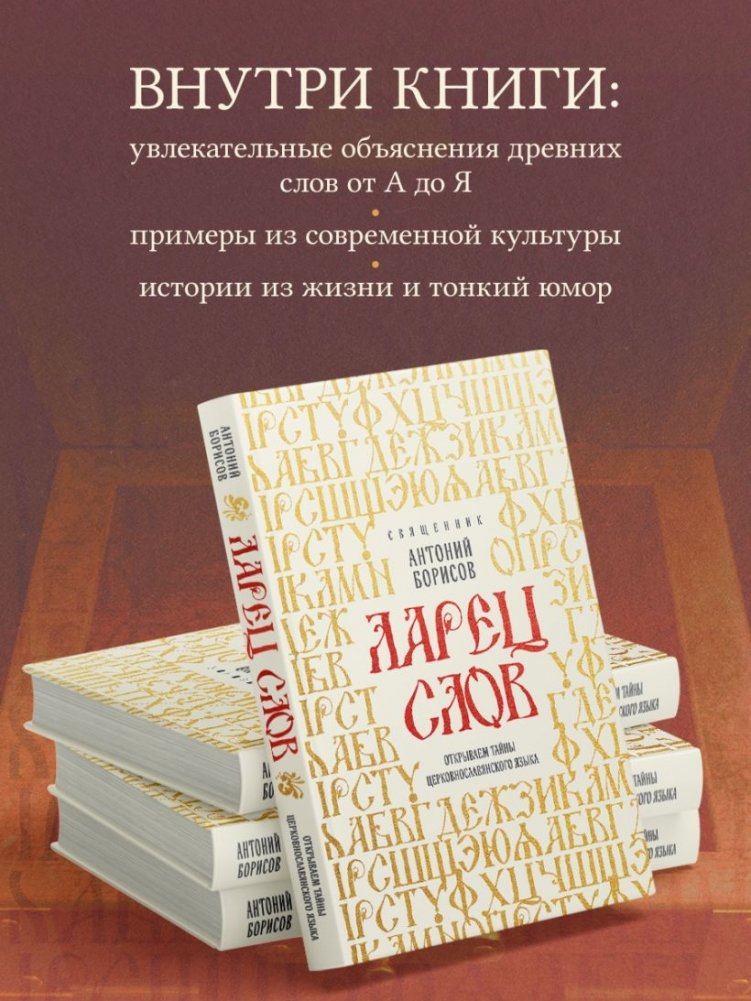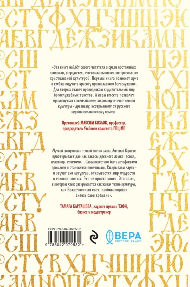 Знаток слова священник Антоний Борисов приоткрывает для нас тайны церковнославянского языка. Слова перестают быть просто артефактами прошлого и становятся близкими и понятными. Иначе звучит эхо литургии, открывается мир мудрости и голосов святых. Это не просто книга. Это опыт, в котором язык раскрывается как живая ткань культуры, как божественный свет, пробивающийся сквозь слои времени. Книга будет интересна как православным христианам, так и тем, кто только начинает интересоваться христианской культурой. Она даст возможность понимать православное богослужение глубже и видеть его красоту во всей полноте, позволит прикоснуться к одному из величайших сокровищ отечественной культуры – великому, древнему, русскому церковнославянскому языку.