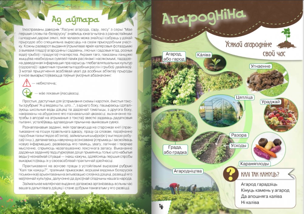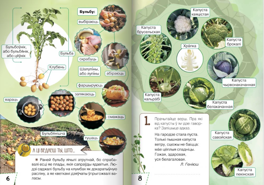 Простыя, даступныя для ўспрымання схемы і кароткія, ёмістыя тэксты з рубрыкі “А ці ведаеш ты, што…”, з аднаго боку, пашыраюць і дэталізуюць школьныя веды дзіцяці па дадзенай тэматыцы, з другога боку, накіраваны на абуджэнне яго пазнавальнай цікавасці, вызначэнне патрэбы з апорай на атрыманыя з тэкстаў звесткі задаваць дадатковыя пытанні, усталёўваць адпаведныя прычынна-выніковыя сувязі.
