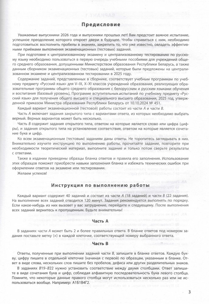 Сборник тестов содержит экзаменационные (тестовые) задания по русскому языку, предложенные участникам централизованного экзамена и централизованного тестирования в 2025 году. Ко всем заданиям даны ответы.