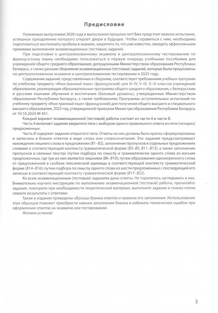 Сборник тестов содержит экзаменационные (тестовые) задания по французскому языку, предложенные участникам централизованного экзамена и централизованного тестирования в 2025 году. Ко всем заданиям даны ответы.