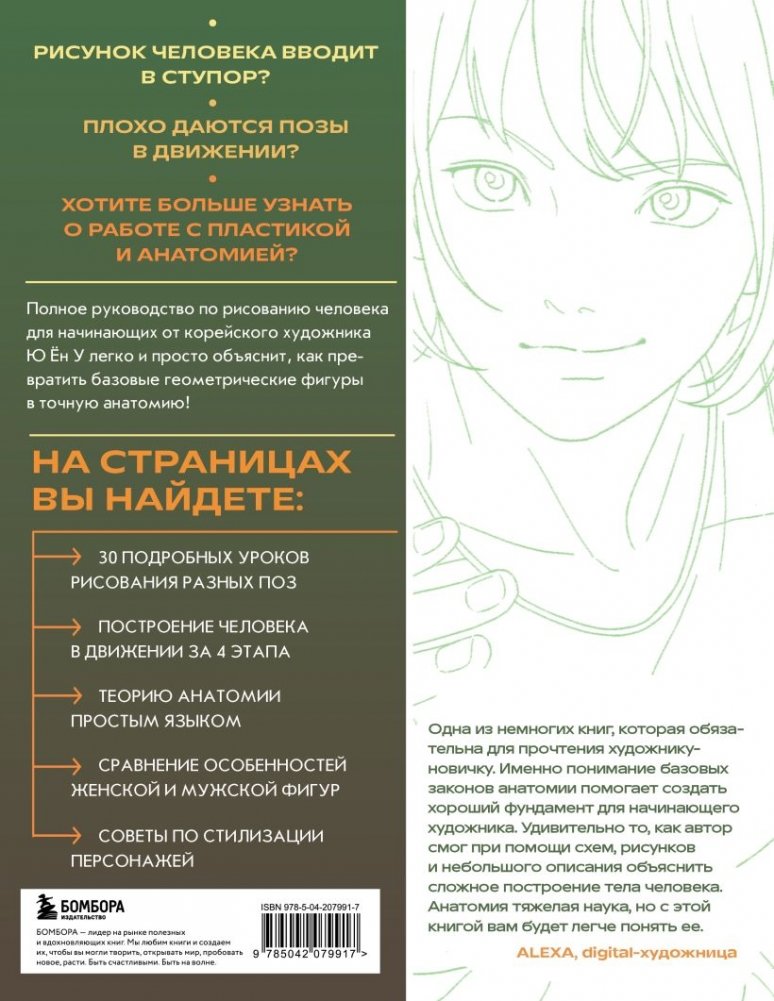 Руководство "Анатомия движения" – это практический экспресс-курс по рисованию фигуры человека для начинающих художников. Его автор, корейский художник Ю Ён У, поделится всеми тонкостями рисования реалистичных героев за 30 уроков. Вместе с автором вы разберете принципы работы мышц, костей человеческого тела, поймете, как оно работает в динамике, и сможете полностью овладеть основами рисунка человека. А забавный маскот и комиксы-подсказки помогут усвоить сложную теорию легко и просто!