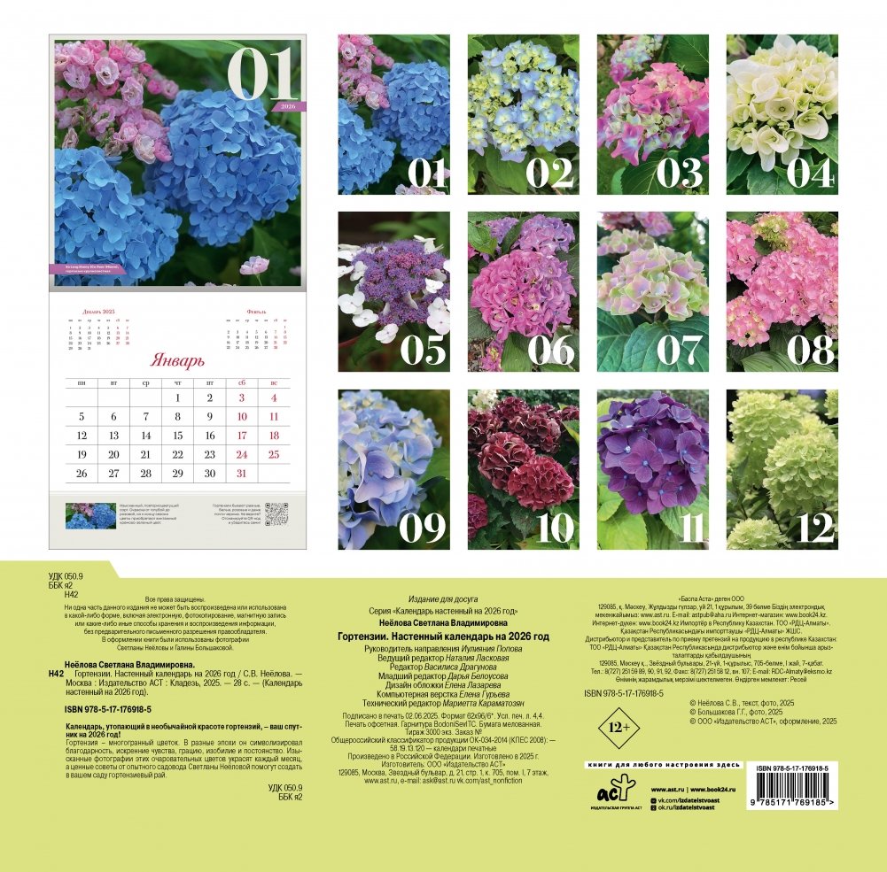 Календарь, утопающий в необычайной красоте гортензий, – ваш спутник на 2026 год! Гортензия – многогранный цветок. В разные эпохи он символизировал благодарность, искренние чувства, красоту, изобилие и постоянство. Изысканные фотографии этих очаровательных цветов украсят каждый месяц, а ценные советы от опытного садовода Светланы Неёловой помогут создать в вашем саду гортензиевый рай.