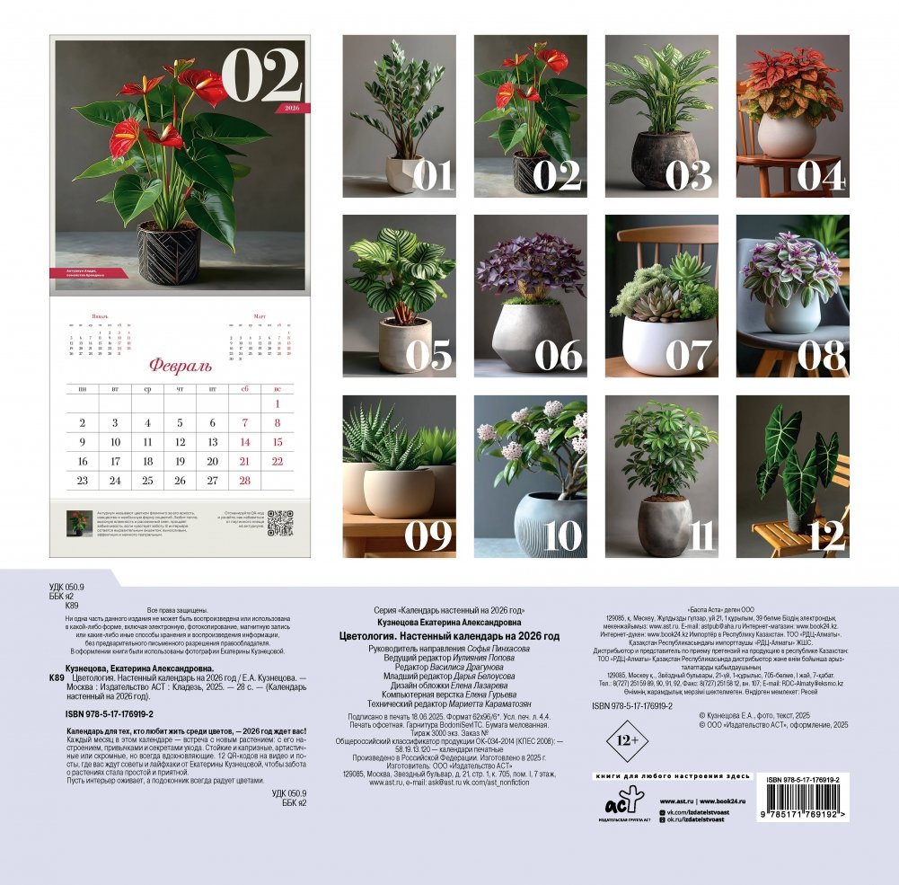 Календарь для тех, кто любит жить среди цветов, — 2026 год ждет вас! Каждый месяц в этом календаре — встреча с новым растением: с его настроением, привычками и секретами ухода. Стойкие и капризные, артистичные или скромные, но всегда вдохновляющие. 12 QR-кодов на видео и посты, где вас ждут советы и лайфхаки от Екатерины Кузнецовой, чтобы забота о растениях стала простой и приятной.