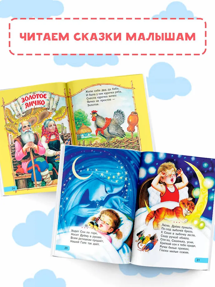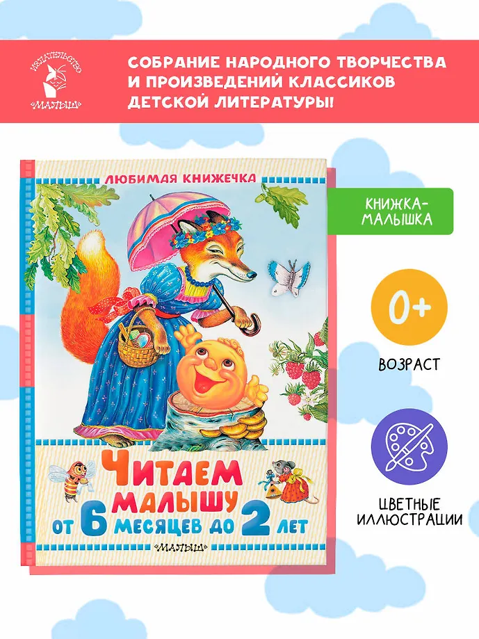 В сборник вошли самые популярные русские народные песенки и потешки, русские народные и авторские сказки, а также стихотворения классиков детской литературы – С. Марашка, А. Барто, В. Берестова, В. Степанова и других. Это хрестоматийные произведения, с которыми человек знакомится в раннем детстве и которые остаются с ним на всю жизнь, а затем передаются уже своим детям и внукам. Благодаря небольшому формату книгу удобно брать с собой – в поликлинику, на детскую площадку или в поликлинику, - чтобы провести время весело и с пользой.