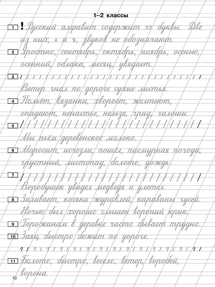 "Чистописание и грамотность. Обучающие прописи" — это прописи для учеников 1−3 классов, основанные на авторской методике известного педагога О. В. Узоровой. Упражнения по чистописанию помогут ребёнку сформировать красивый и разборчивый почерк, отработать и довести до автоматизма навык написания букв, справиться с трудностями, возникающими в процессе перехода на широкую строчку. Для начального образования.
