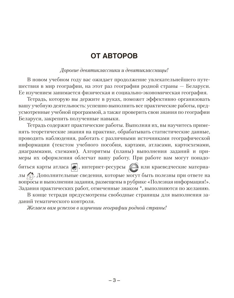 Тетрадь составлена в соответствии с программой и учебным пособием для 9 класса. Она включает практические работы, предусмотренные учебной программой. Использование тетради сокращает время на выполнение работ учениками и их проверку учителем.