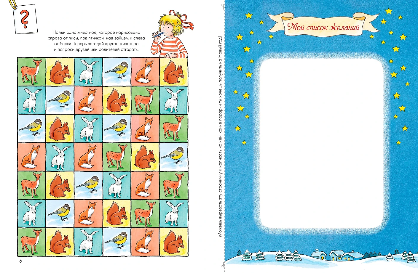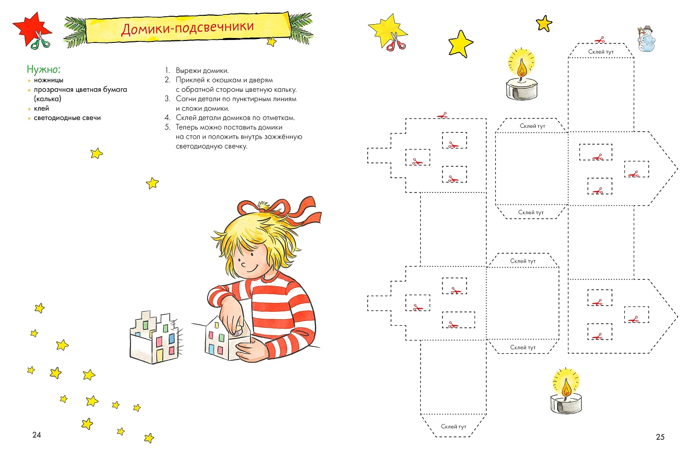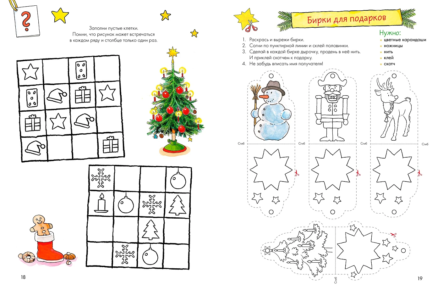 Самая новогодняя книжка с заданиями от Конни. Идеи для украшения дома и елочные игрушки своими руками, шаблоны поздравительных открыток, зимние лабиринты и загадки и, конечно, наклейки для украшения подарков!
