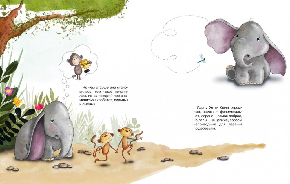 Однажды малышка Хетти, лесной слонёнок, решила научиться лазать по деревьям. Так сильно ей не хотелось выделяться. Но оказалось, что быть как все – совсем не весело…