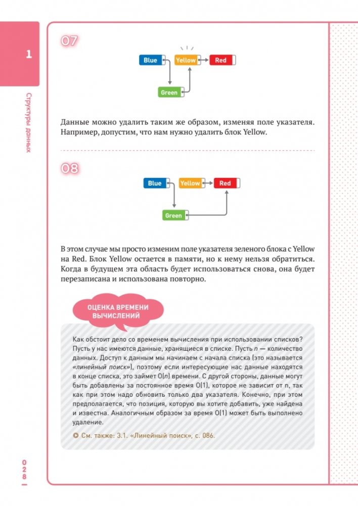 Эта яркая книга делает изучение алгоритмов и структур данных простым и увлекательным. Благодаря полноцветным иллюстрациям, схемам и наглядным примерам сложные концепции становятся понятными даже новичкам. Вы узнаете, что такое эффективность алгоритмов, как работают сортировка, поиск, графы и хеш-таблицы, а также познакомитесь с криптографией, сжатием данных, защитой информации и машинным обучением (алгоритмом кластеризации). Материал изложен так, чтобы вы не просто запомнили алгоритмы, но и научились применять их на практике.
