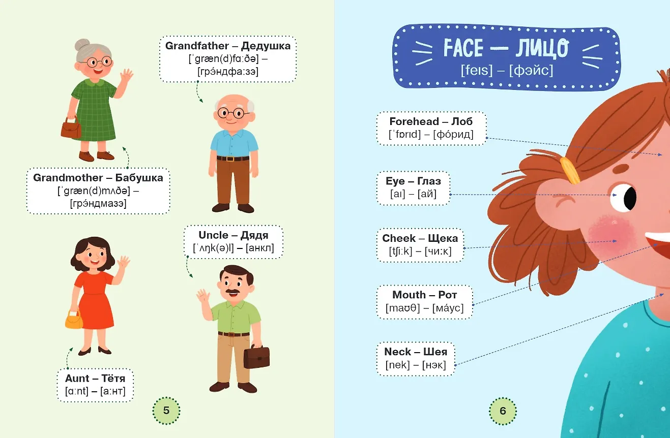 Визуальный словарь английского языка для детей — это наглядный и дружелюбный помощник в первых шагах изучения иностранного языка. Словарь включает базовую лексику, разделённую на 27 тематических блоков: животные, природа, семья, еда, цвета и другие важные для ребёнка темы. Каждое слово сопровождается переводом, транскрипцией на английском и русском языках, а также красочными авторскими иллюстрациями, которые делают запоминание лёгким, а обучение — увлекательным. Книга предназначена для занятий родителей с детьми - учите язык вместе с ребенком! Словарь помогает развивать зрительную память, ассоциативное мышление и формирует прочную основу для дальнейшего погружения в английский язык.