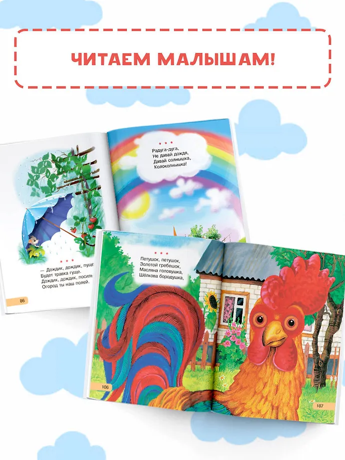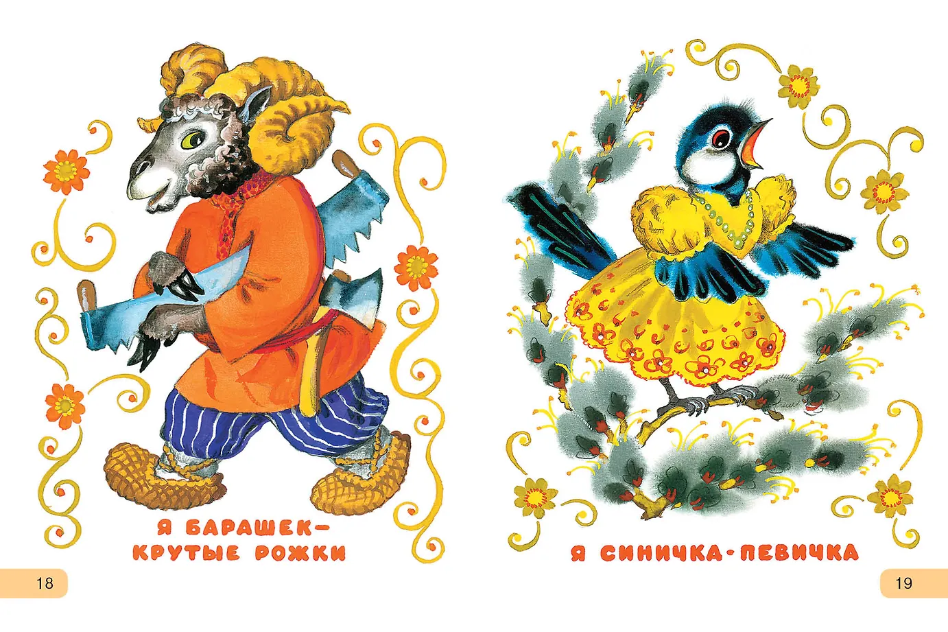 С давних пор расшалившихся малышей мог успокоить только ласковый мамин голос и ритмичные, напевные стихи с простыми рифмами — песенки, потешки и колыбельные. Песенки о сороке-белобоке, двух весёлых гусях, козе рогатой, кошкином доме и многие-многие другие популярные русские народные песенки, потешки и колыбельные вошли в этот сборник.