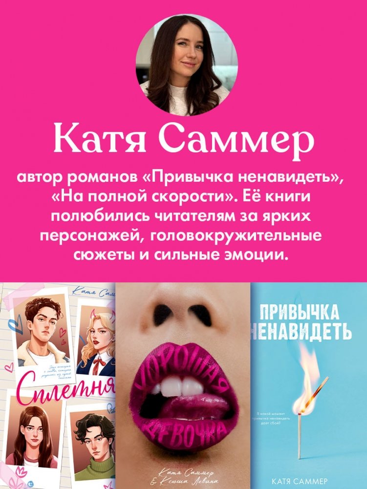 Поклонники Кати Саммер любят ее книги романы («Привычка ненавидеть», «На полной скорости») за романтические сюжеты, за глубокую проработку персонажей, за огненные эмоции и легкий и увлекательный язык.