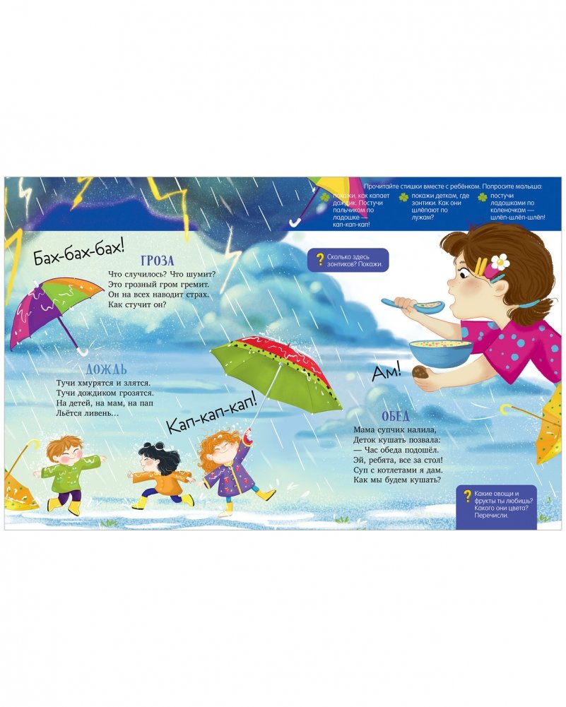 Стихи-болтушки научат малыша говорить! А еще в книге есть задания на развитие внимания, памяти, на изучение цветов, счета, подвижные игры и «найди и покажи» и многое другое.