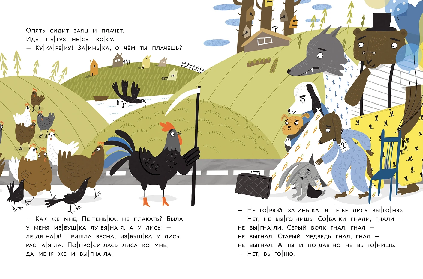 Это сказка о том, как хитрая лиса выгнала доброго зайчика из его избушки. Никто не мог ему помочь: ни собаки, ни волк, ни даже медведь. Справится ли с этим петушок в красных сапогах?
