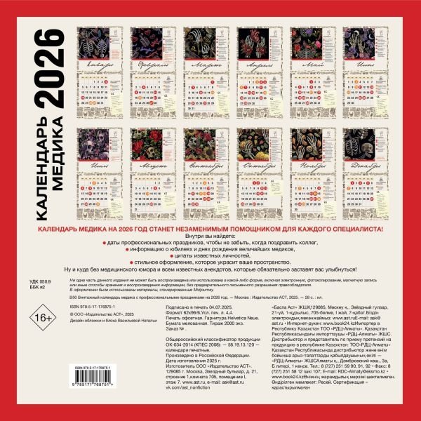 Внутри вы найдете: - даты профессиональных праздников, чтобы не забыть, когда поздравить коллег, - информацию о юбилеях и днях рождения величайших медиков, цитаты известных личностей, - стильное оформление, которое украсит ваше пространство. Ну и куда без медицинского юмора и всем известных анекдотов, которые обязательно заставят вас улыбнуться!