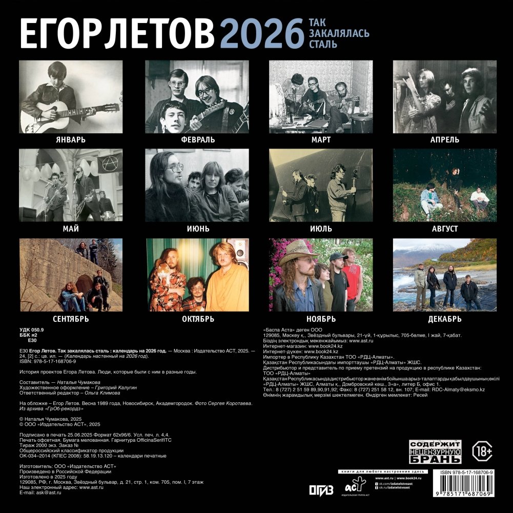 Календарь настенный на 2026 год. История проектов Егора Летова. Люди, которые были с ним в разные годы.