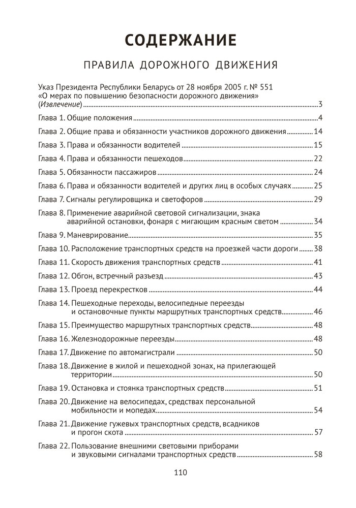 В издание включены Правила дорожного движения, утвержденные Указом Президента Республики Беларусь от 28 ноября 2005 г. № 551 «О мерах по повышению безопасности дорожного движения», с изменениями, внесенными Указом Президента Республики Беларусь от 4 августа 2025 г. № 295 «Об изменении Указа Президента Республики Беларусь» и вступающими в силу с 1 сентября 2025 г. Также издание содержит нормы административной ответственности за правонарушения в области дорожного движения.