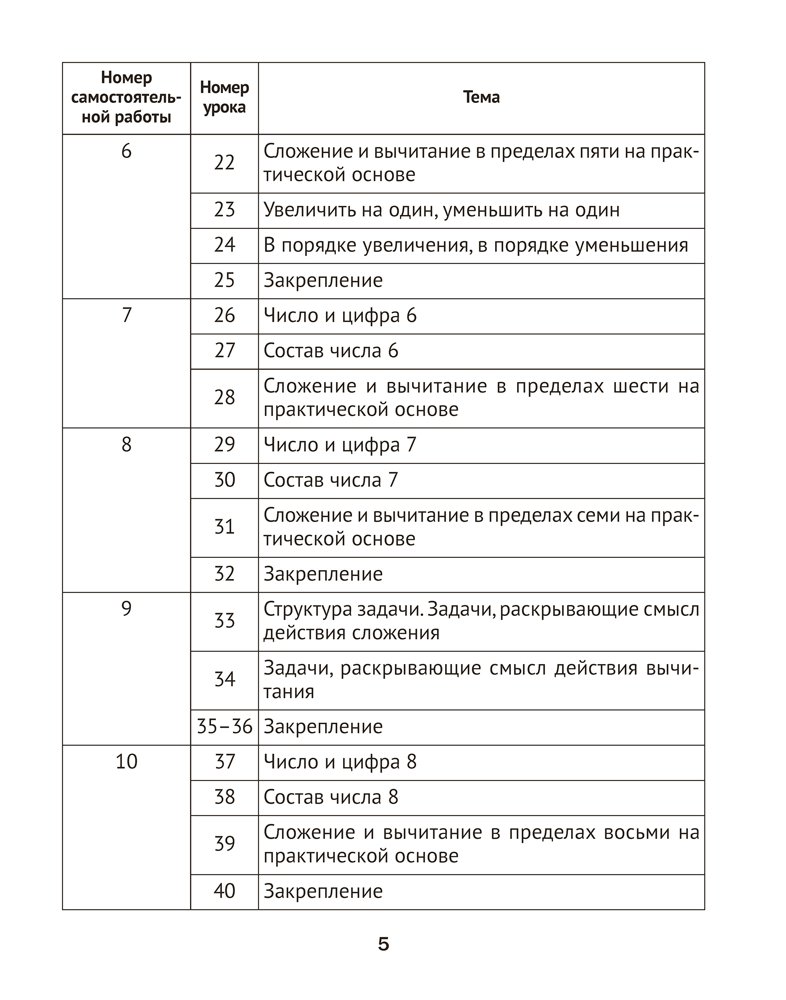 Пособие составлено в соответствии с учебной программой и содержит тематические самостоятельные и контрольную работы, представленные в двух вариантах. Каждая самостоятельная работа относится к указанным в издании урокам учебника «Математика. 1 класс» (авторы Г. Л. Муравьёва, М. А. Урбан). В пособии также приведены задания для проверки навыков устного счёта.