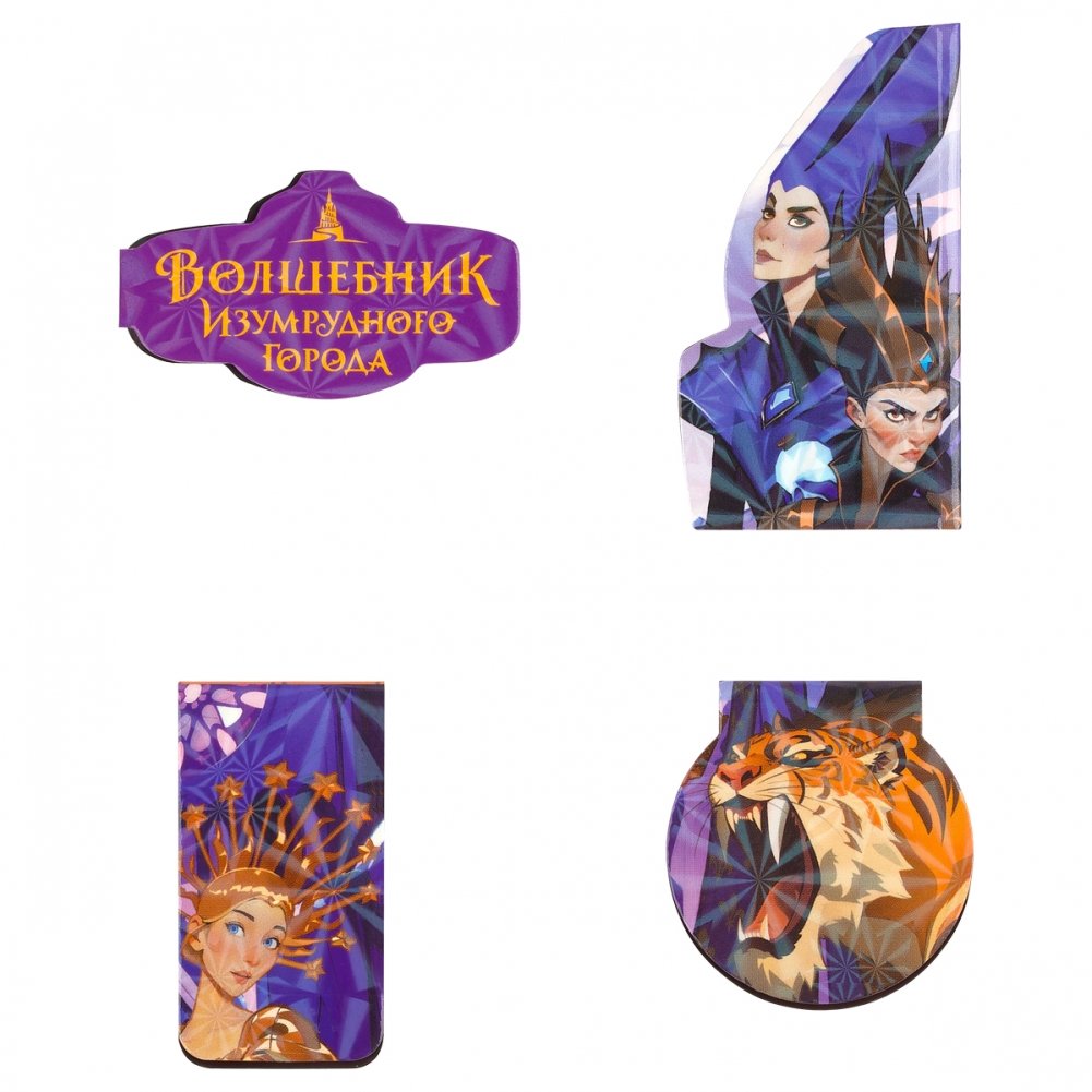 Закладки магнитные для книг, 4шт., Волшебник изумрудного города "Магия"
