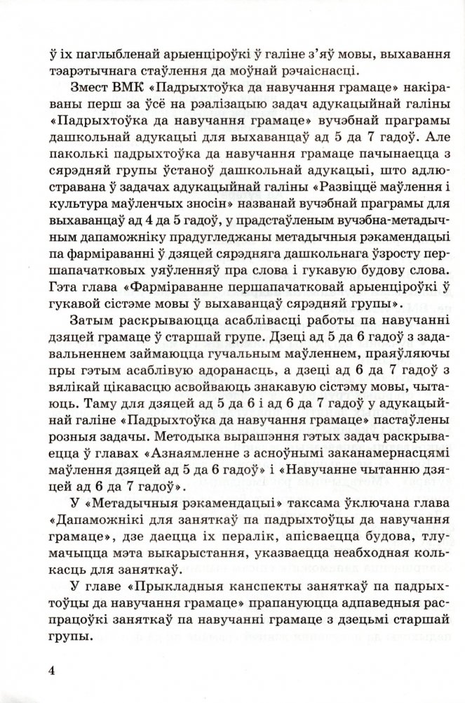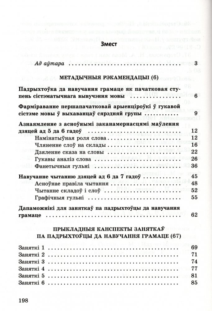 Вучэбна-метадычны дапаможнік "Падрыхтоўка да навучання грамаце" з'яўляецца часткай вучэбна-метадычнага комплексу, у ім раскрываюцца асновы навучання дзяцей дашкольнонага ўзросту грамаце ў адпаведнасці з вучэбнай праграмай дашкольнай адукацыі. Прыводзяцца прыкладныя канспекты для выхаванцаў ад 5 да 7 гадоў.