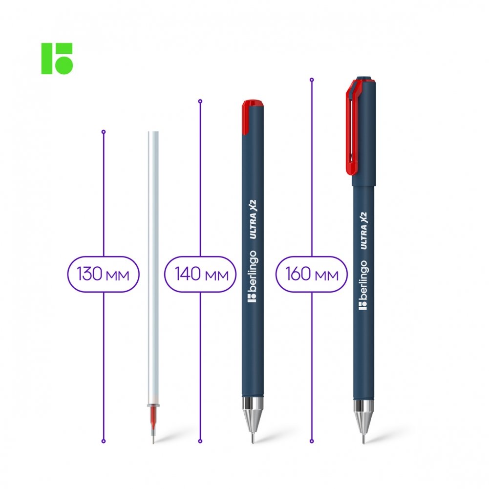 Ручка шариковая Berlingo "Ultra X2" красная, 0,7мм, игольчатый стержень