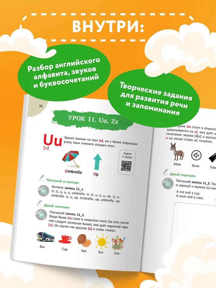 В ваших руках интерактивный тренажер для развития навыка чтения на английском для учеников начальной школы. Книга состоит из 24 ярких уроков, охватывающих все буквы алфавита и часто используемые буквосочетания. Благодаря аудированию, расположенному по QR-кодам, вы и ваш ребенок научитесь правильному произношению и восприятию на слух. Каждый урок завершается местом для медалек, которые дети с родителем могут вырезать и приклеивать. По завершении курса ученики получают сертификат, расположенный в конце книги вместе с медальками. Автор, Алина Слепушкина, имеет 13-летний опыт преподавания и стремится сделать изучение языка веселым и увлекательным. Этот тренажер — путь к уверенности и радости от чтения на английском!