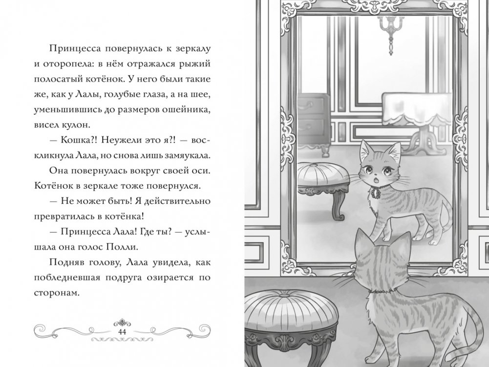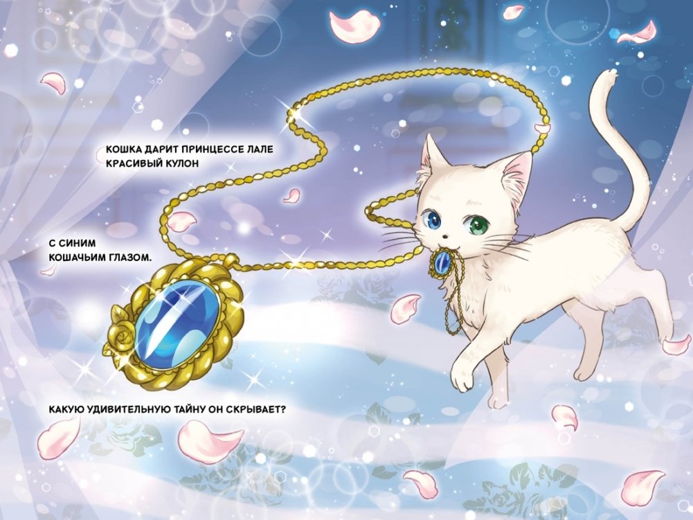 Накануне десятого дня рождения к принцессе Лале пришла загадочная белая кошка и подарила кулон с красивым камнем. Оказалось, в нём заключена магия! Принцесса превратилась в котёнка и сбежала из дворца исследовать королевство. Весь день она творила по-настоящему добрые дела — помогла мальчику найти пропавшую сестру, подсказала королевской страже, где украденные драгоценности. А вечером даже успела на салют в замке в честь своего праздника! Но что, если белая кошка не так проста? И как тайна кулона связана с семьёй Лалы?