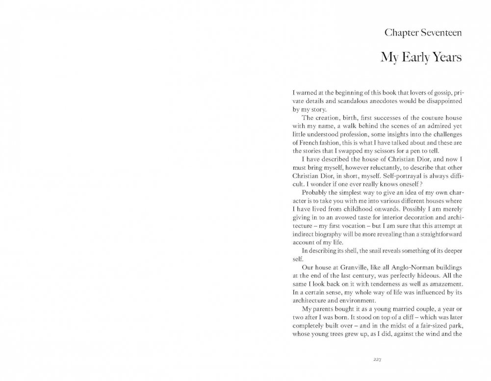Christian Dior (1905–1957) found fame with his first collection in 1947 when the "New Look" took the world by world by storm. This charming autobiography gives a fascinating insight into the workings of a great fashion house, while revealing the private man behind the high-profile establishment.